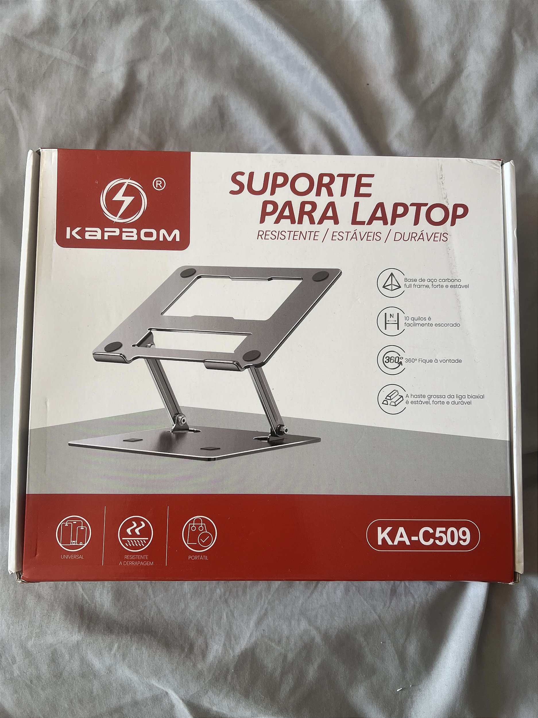 Cód: KA-C509 Marca: KAPBOM Cor: cinza. Modelo: Suporte de Notebook AeroStand. Fixação do Celular: Não. Fixação de Base: Base. Material: Aço Garantia